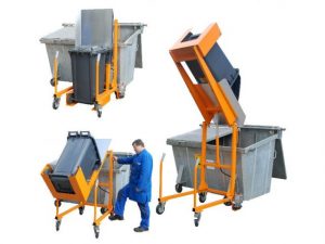 Degelijke Afvalcontainer Kantelaar met VOETPOMP van Duitse makelij voor het leeg kiepen van 120 en 240 liter afval verzamelcontainers/kliko’s.
