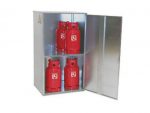 Gasflessenkast met capaciteit van 20 x 11kg gasflessen, legbord en dubbele deur.
