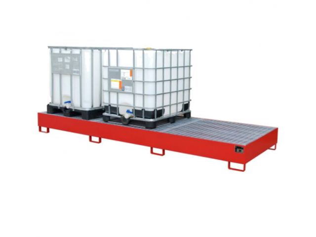 Degelijke Gelakt stalen of verzinkt stalen opvangbak van Duitse kwaliteit voor 3 stuks 1000 liter IBC uit 3 mm plaatstaal met verzinkt rooster. Productie onder toezicht van de TUV.