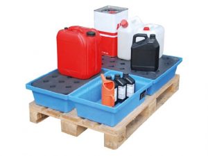 Voor de opvang van bijtende en corrosieve chemicaliën. Niet geschikt voor brandbare stoffen.