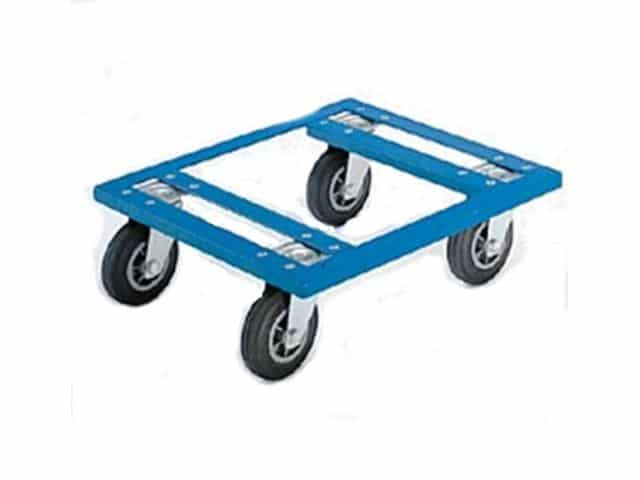 Transporthond met vlak frame, 4 zwenkwielen en 2 wielvastzetters.
